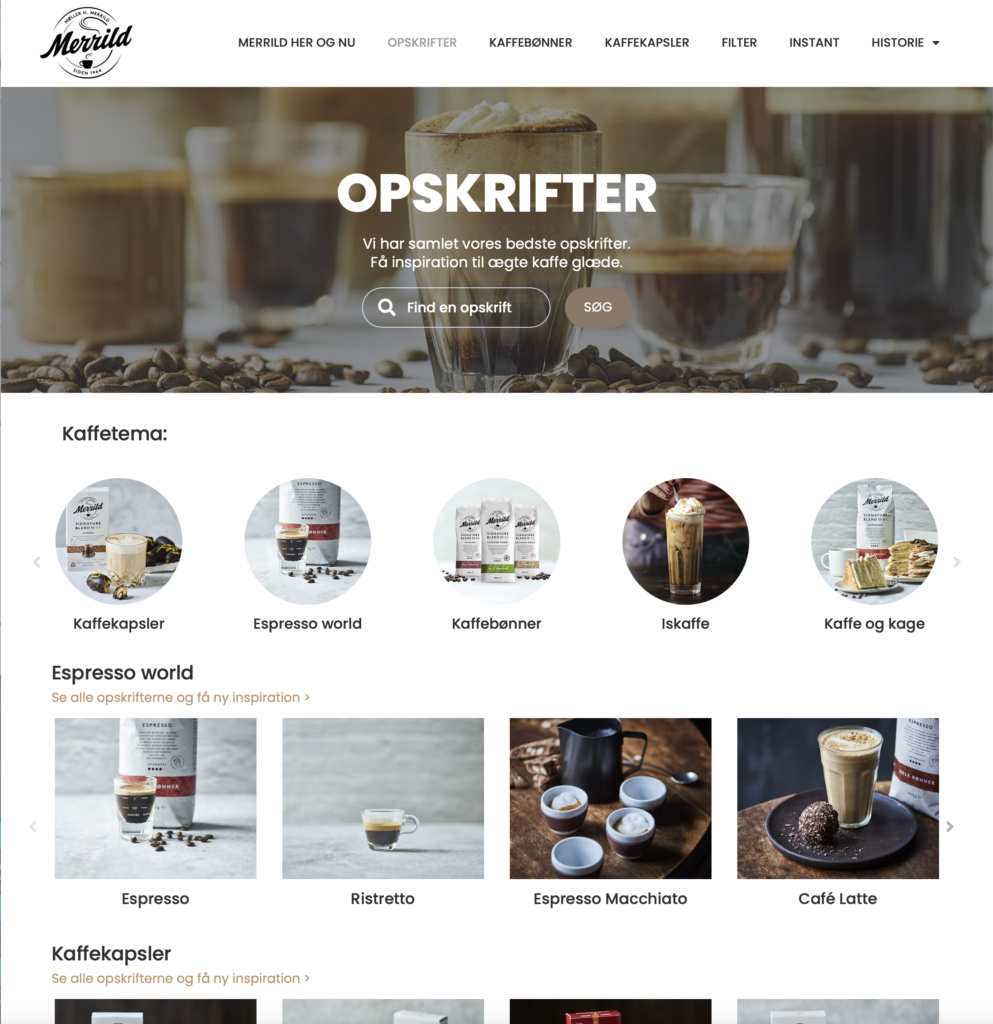 Vi har fået masser af ny viden og masser erfaringer med WordPress og Elementor fra et nyt spændende WEB projekt til Merrild Kaffe og deres opskrifter.